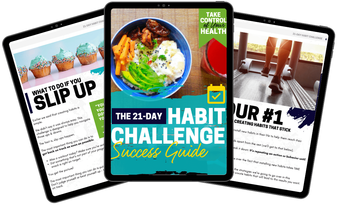 A 21-Day Habit Challenge Success Guide to help you implement brand new healthy habits and give you the tools and strategies you need to hit your goals faster